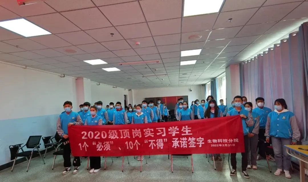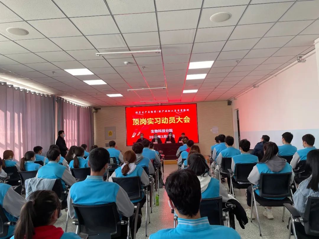 教育部等八部门关于印发《职业学校学生实习管理规定》,进一步明确了学生实习的行为准则,为实习管理划定了“红线”。生物科技分院认真学习相关文件精神,遵照管理规定,对学生顶岗实习进行了细致地安排部署。2022年3月31日下午,生物科技分院在1101教室召开2020级种子生产与经营专业、农产品加工与质量检测专业顶岗实习动员大会。生物科技分院党总支负责人孙泽昭、副院长王新燕、副院长张炳坤以及班主任、辅导员、各专业学生参加了此次大会。本次大会由种子工程教研室主任贾丽慧主持。