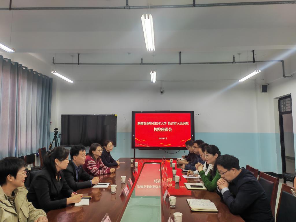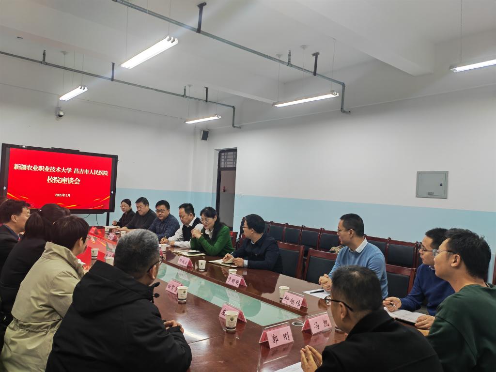 2025年1月17日上午,昌吉市人民医院党委书记张勇一行来我校生物科技学院1619会议室开展交流座谈。校党委副书记李建荣,校党委常委、副校长邓双义出席,科研处、生物科技学院、动物科技学院等相关负责人参加座谈,座谈会由李建荣主持。