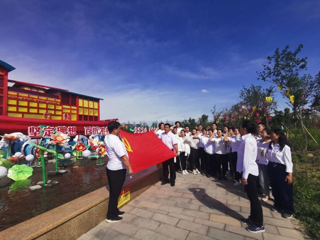 活动中所有党员在红船旁学习红船精神: 1921年,中国共产党第一次全国代表大会在浙江嘉兴南湖的一条游船(后称“红船”)上胜利闭幕,庄严宣告中国共产党的诞生。从此,中国的新民主主义革命就有了坚强的领导者——中国共产党。中国共产党在红船中诞生这一伟大革命实践所表现出来的精神就是:中国革命的航船从这里扬帆起航,体现了“开天辟地、敢为人先”的首创精神;中国共产党的诞生,使中国革命从此有了坚定的理想信念和强大的精神支柱,体现了“坚定理想、百折不挠”的奋斗精神;中国共产党从诞生的那天起,从来就没有自己的私利,而是以全心全意为人民谋福利为根本宗旨,体现了“立党为公、忠诚为民”的奉献精神。同时所有党员还重温了入党誓词。
