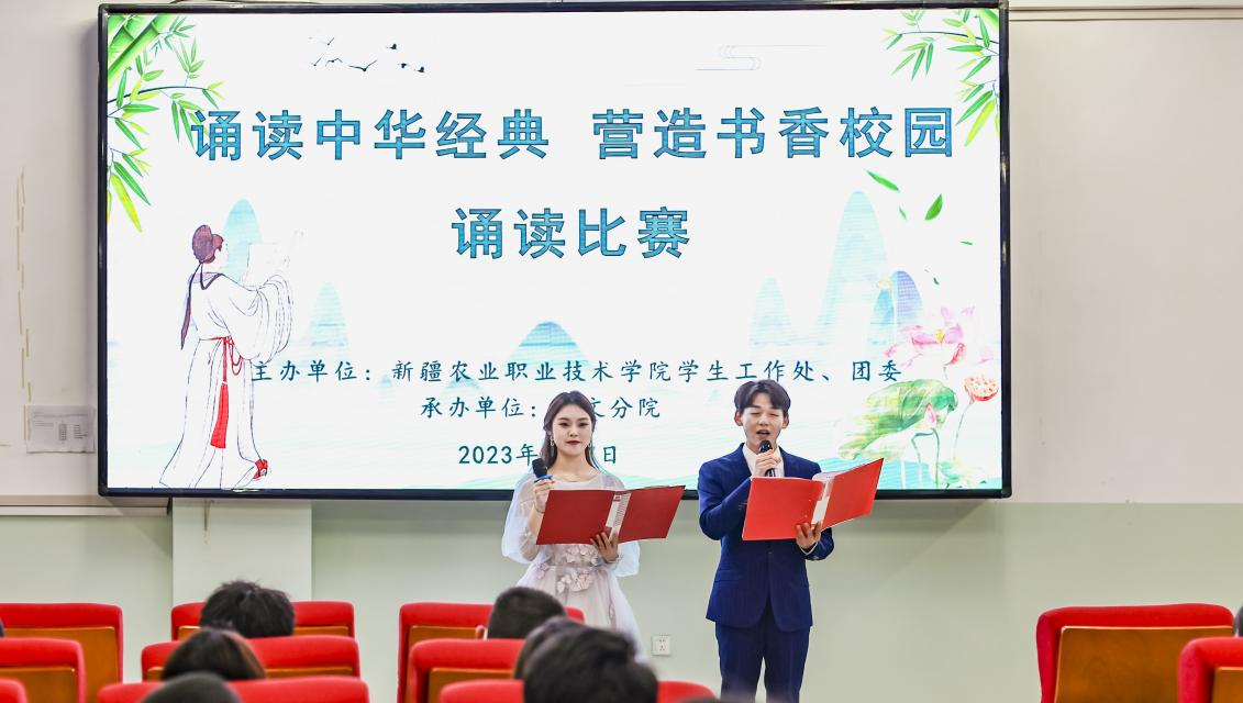 为全面贯彻落实党的二十大精神,弘扬中华传统优秀文化,推进文化自信自强,丰富校园文化生活。人文分院于2023年4月7日在10号楼2楼阶梯教室隆重举行了“诵读中华经典,营造书香校园”诵读活动。