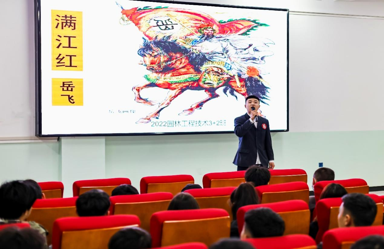 《茅屋为秋风所破歌》和《我和我的土地》的朗诵者展现了较高的朗读水平。一首《满江红》更是再现岳飞将军精忠报国顶天立地的形象。更不用说《将进酒》《致橡树》《沁园春·长沙》《蜀道难》《雨巷》……一首首经典诗歌,一篇篇经典美文,形式多样,精彩纷呈,美妙绝伦,让人目不暇接,赢得了在场观众的阵阵喝彩。学院学生在诗词诵读中感受中华文化的博大精深,也充分展示了自身锐意进取、博学笃行的良好精神风貌。