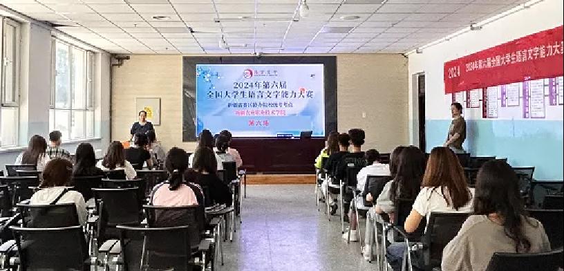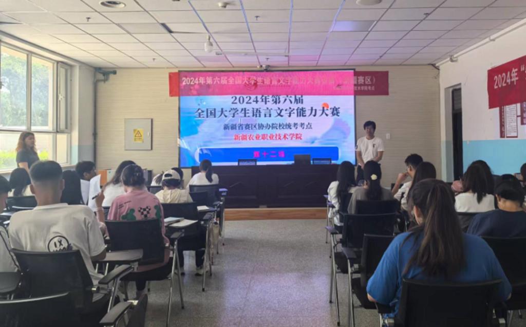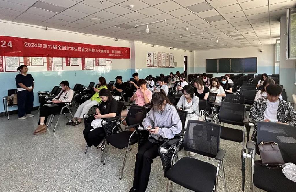 为了进一步推广国家通用语言文字,提升学生语言文化素养,2024年6月1日至2日,由中国语文报刊协会读写教学分会主办,新疆农业职业技术学院人文学院语言教研室协办的主题为“传承之美·文化创新·弘扬中国文化——2024年第六届全国大学生语言文字能力大赛”省赛,在1101教室举办,大赛分为2天共4个场次进行,近百名学生参加了此次比赛。