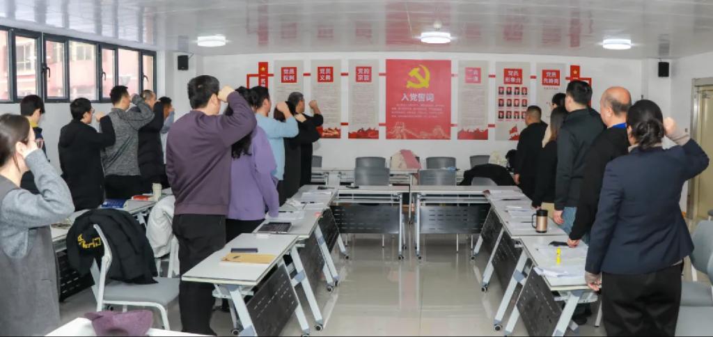 重温入党誓词环节,在摆晓龙书记带领下,全体党员面对鲜红的党旗,庄严肃立,高举右拳,一字一句重温入党誓词,回顾入党初心,进一步强化了党员意识,激发了党员的认同感、责任感和使命感。之后,支部每个党员按照《党章》规定,足额按时缴纳党费,切实增强党性观念,展现党员对党的纪律和规章制度的尊重与执行。
