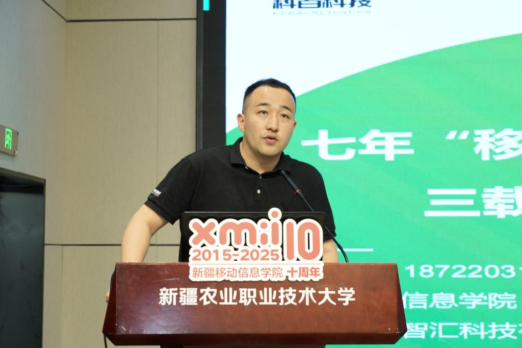 新疆科百智汇科技有限公司总经理王海天讲述了校企合作助力农业发展的故事。