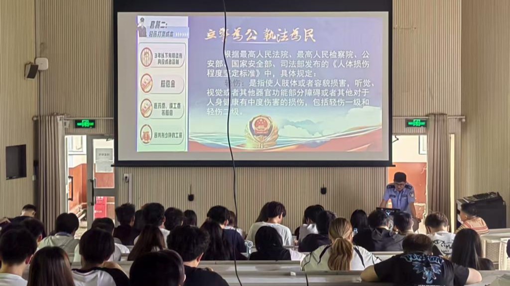 学校民警苗辉警官聚焦网络法治规范、总体国家安全观等主题授课,帮助学生提升国家安全意识与网络素养,指导学生精准识别各类安全风险、坚决抵御极端思想,引导学生践行“不信谣、不传谣、不违法”的行为准则,共同维护校园与社会稳定。