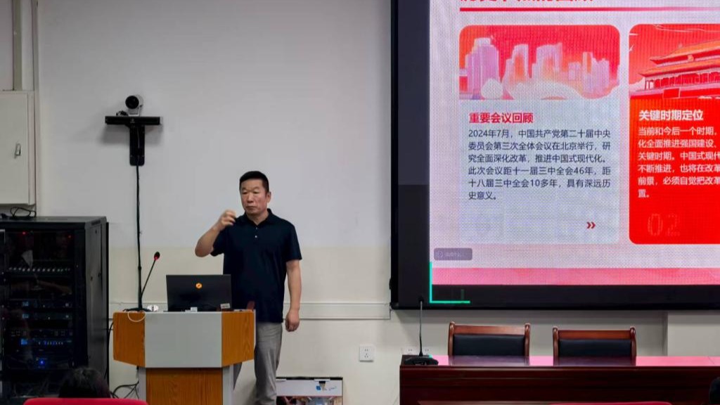信息技术学院党委书记潘新哲以党的二十届三中全会精神、自治区教育工作会议精神为核心展开授课,深入阐述中国式现代化与青年责任担当的内在逻辑,要求学生切实增强“四个意识”、坚定“四个自信”、做到“两个维护”。结合新疆教育强区建设的使命任务,引导学生将个人发展规划与国家命运紧密相连,牢固树立“请党放心,强国有我”的理想信念。