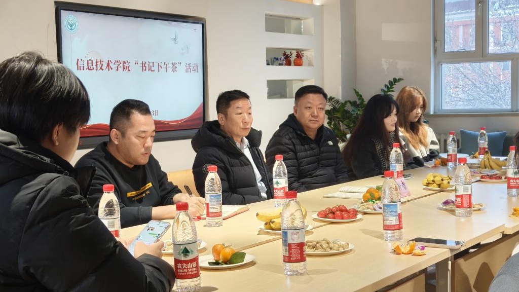 2025年12月23日下午,信息技术学院“书记下午茶”活动在一站式学生服务大厅举行,学院党委书记潘新哲、学工办主任张辛、辅导员贾阳及各班级学生代表共32人参与交流。