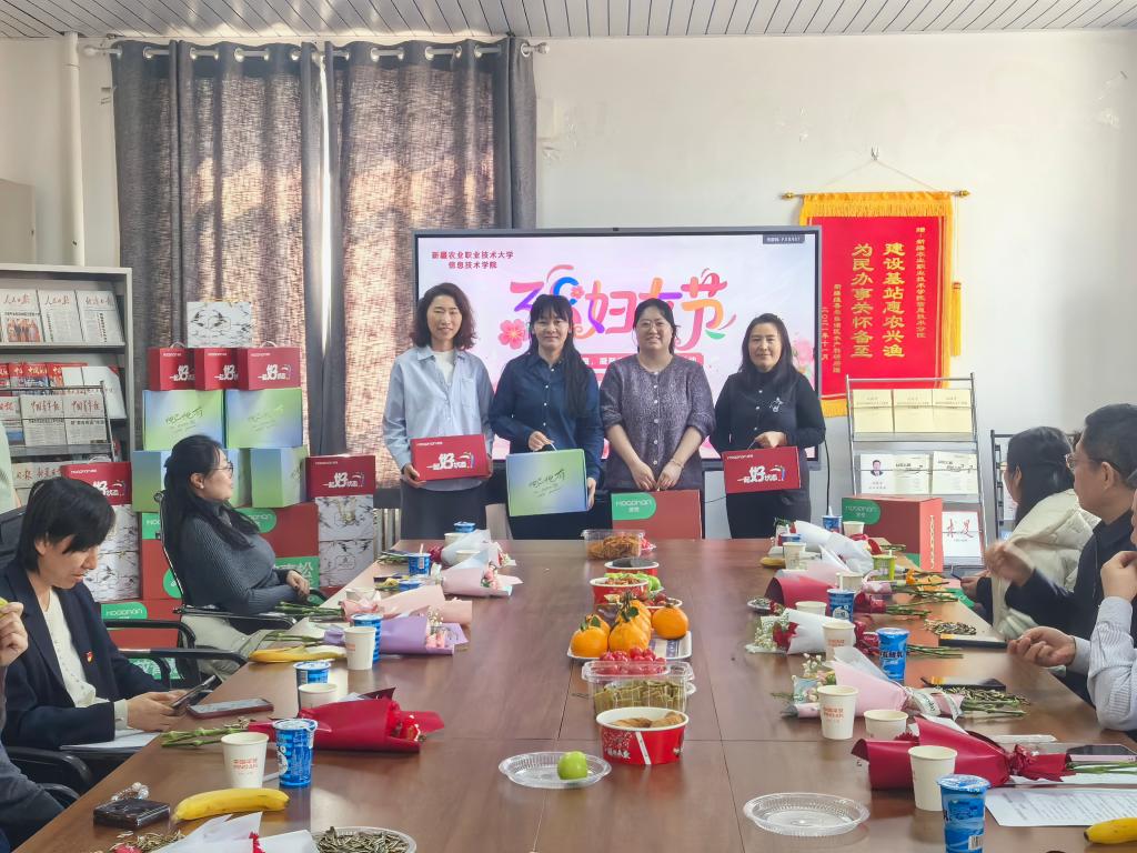 春风送暖,万物复苏,在第 115个 “三八” 国际劳动妇女节到来之际,为致敬学院全体女教职工,丰富女教职工精神文化生活,进一步增强学院的凝聚力与向心力,激励女教职工在岗位上继续发光发热、奋勇争先,3 月 8 日上午 12:30,新疆农业职业技术大学信息技术学院于学院会议室开展以 “巾帼心向党,数智绽芳华” 为主题的三八国际妇女节庆祝活动。本次活动由学院党委书记潘新哲同志主持,党委副书记、院长杨功元同志和学院副院长张媛同志出席活动,学院 41 名女教职工全员参与。