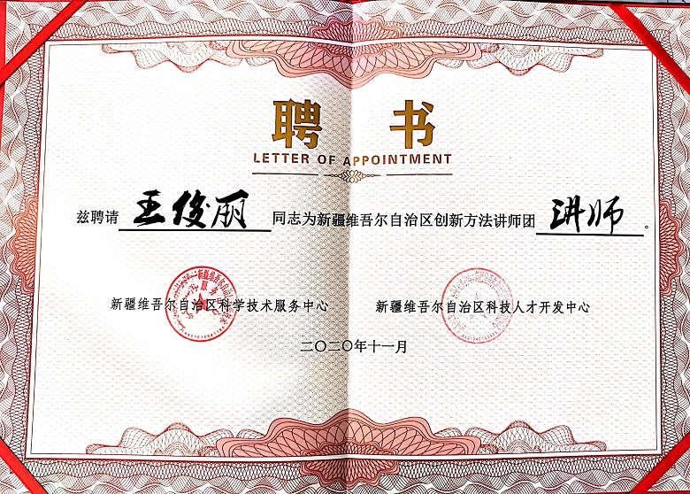 新疆农业职业技术学院副教授、软件工程硕士。自治区优秀就业指导老师、创新创业优秀指导老师。主要在高校从事创新方法、创新创业、职业生涯、就业指导领域教学、咨询工作。